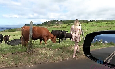 Doggyfucking my joyful Plus-size big-boobed wifey in car in the wild