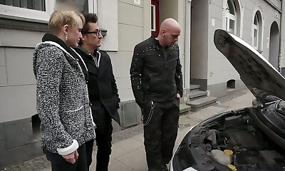 Titless worker Conny Dachs gets fucked by 2 lewd dudes