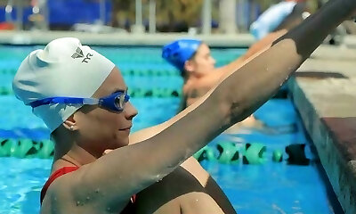 Brannon Rhodes and Meng Lee boinking after jokey water games near the pool
