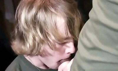 Naughty slut sucking and jerking off two straight twunks
