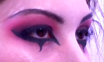 Young Goth Puts on Dark Red Lipstick and Plays with Huge Puffy Nipples