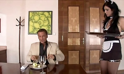 Perfect maid with big tits and big sloppy dreams for a threesome