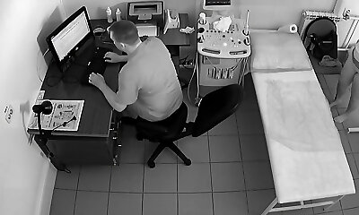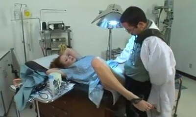 Messy old doctor loves to probe shaved pussy of sex appeal young brunette