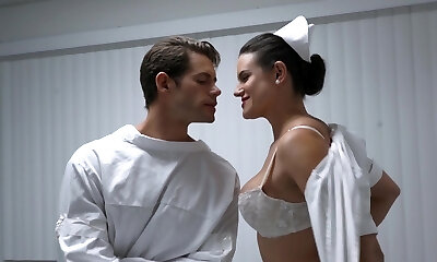 Gorgeous nurse Leigh Darby offers her assets to a fellow