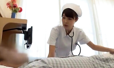 Slutty Japanese nurse receives a cumshot after sucking a dick