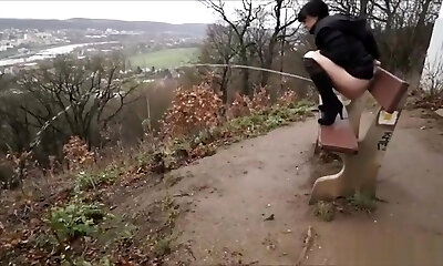 wow enormous fanny pissing on the wooden made up toilet meaty splash