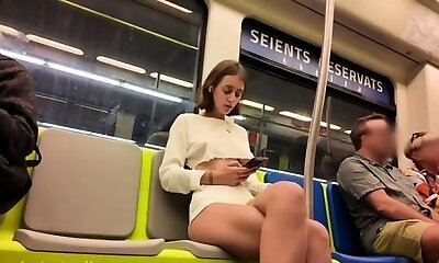 Innocent girl massages my dick on train