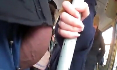 721 On A Crowded Bus From Behind, A Busty Girl Who Feels Soggy And Squeezes Her Baps Thru Her Uniform Raw 17