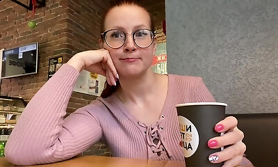 Nina Kayy fucks with a teen waiter in a public wc