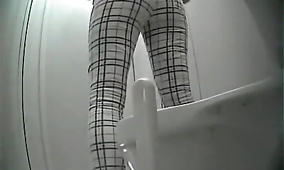 White lean young woman in the toilet guest room got her pussy filmed on cam