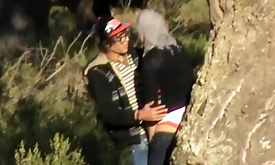 Turkish girl gets lured against a tree in the city park