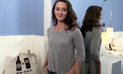 Fresh pigtailed chick Lucy Doll is seduced by aroused stud who wanna fuck her tight slit