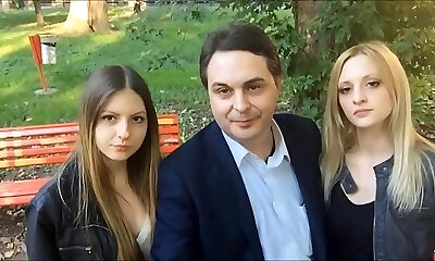 Young skinny gal gave guy a Threesome...
