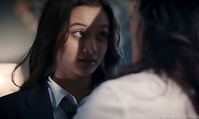 Super-hot like fire sexy office lesbian Alex De La Flor lures charming babe for fuckfest