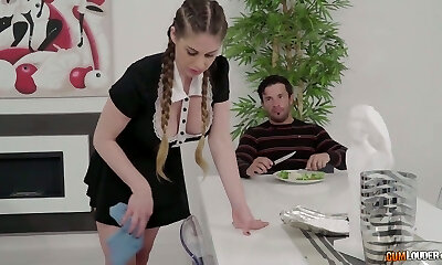 Perfect maid with big tits and big sloppy dreams for a threesome