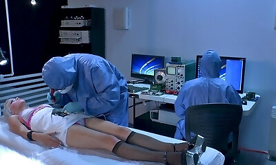 Kinky doctor tie sup busty female patient and licks her cooch