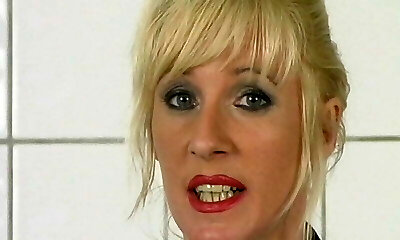 Buxom silver blonde nurse Julie Cash gets cum in facehole at the office