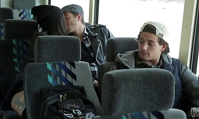 Couple fucks firm on a bus filled with curious viewers