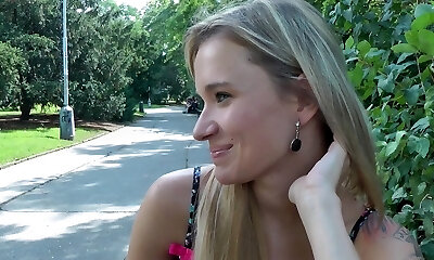 Hot blonde bitch Veronica satisfies herself with fingering outdoors