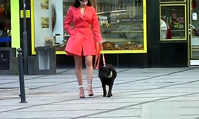 Seducing tramp in public