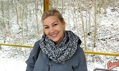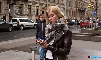 Ash-blonde first-timer Luci Angel gets undressed and fucked in the car