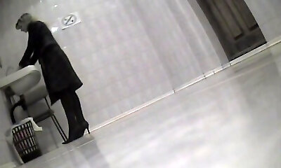 Milky blondie in the shabby toilet room getting filmed on hidden cam
