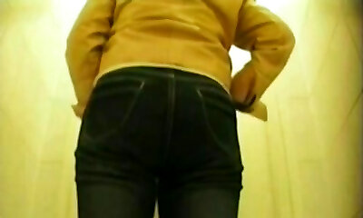 Pale skin booty of a stranger woman filmed from underneath in the rest room