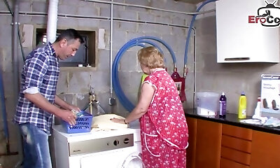 German Ugly mature mom housewife tempts her step son
