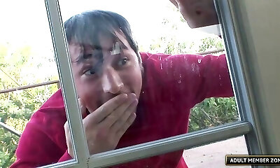 Spying guy invited in to fuck the super-cute cheerleader
